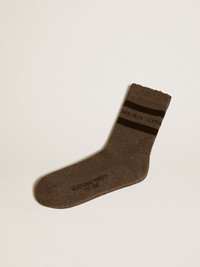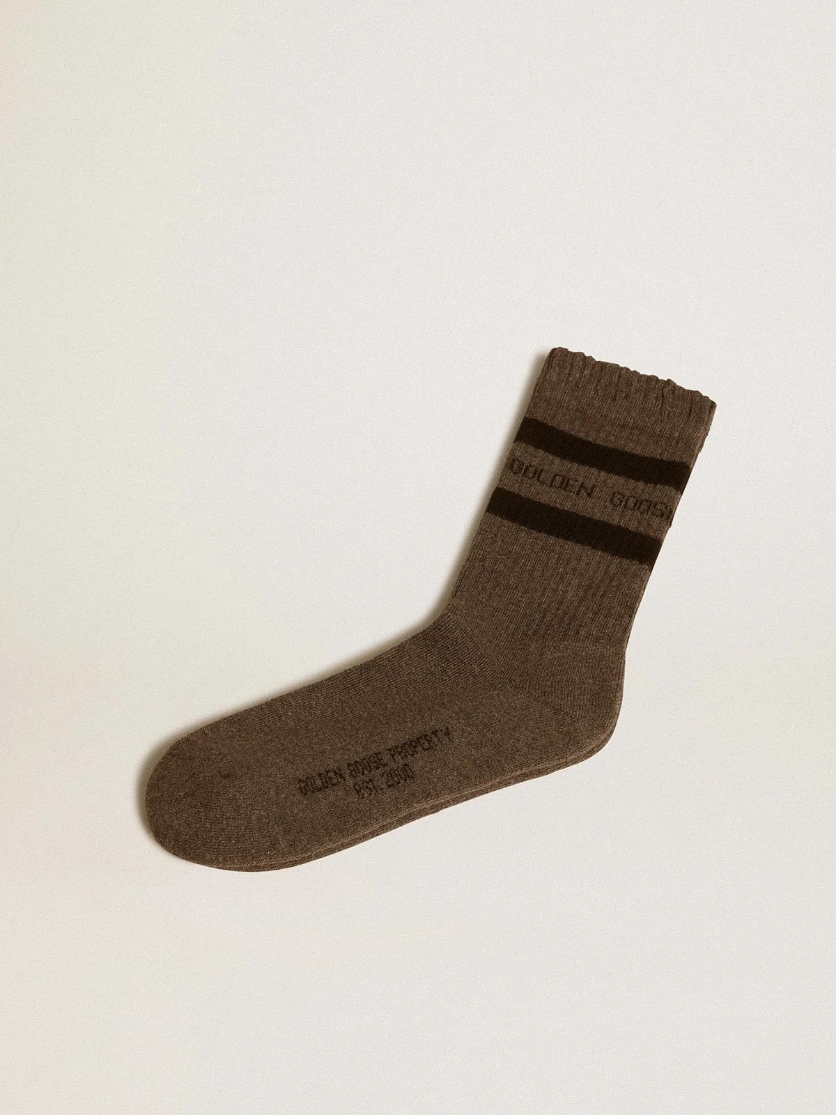 A vintage feel is one of our distinctive components: these grey socks feature distressed details on the leg and dark brown tone-on-tone stripes. DETAILS Item No. GUP00883.P000487.82891 - Journey Collection - Color: grey - Dark brown stripes - Distressed details - Dark brown ''Golden Goose property'' print on the sole - Main material: 70% cotton, 27% polyamide, 3% spandex - Unisex style - Made in Italy