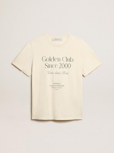 Embracing the essence of the season, this collection radiates vitality and freedom, combining airy elegance with dynamic sparks of energy. This men's T-shirt in gray cotton features black lettering on the back and on the chest. The vintage effect of yellow spraying and micro rips on the edges add a distinctive touch. DETAILS Item No. GMP01220.P001875.60267 - Journey Collection - Color: gray - Regular fit - Short sleeves - Vintage effect - Print on the back and chest in black - Double star on the back - Main material: 100% cotton - Made in Italy The model is 183 cm tall and is wearing a size M.