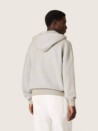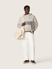 The second drop of Spring/Summer '26 carries the fingerprints of cultures we’ve met along the way – a wardrobe full of spirit, that no matter how diverse, always feels like home. This unisex hooded sweatshirt is made of aluminum-gray melange cotton and features a watercolor print with a flag motif and a vintage treatment with a lived-in effect. The adjustable cord drawstring hood and kangaroo pocket on the front complete the look. DETAILS Item No. GUP02545.P002381.60513 - Journey Collection - Color: aluminum-gray melange - Unisex style - Oversized fit - Cotton sweatshirt with vintage treatment and lived-in effect - Watercolor-effect print with flag motif - Hood with cord drawstring - Kangaroo pocket on the front - Main material: 100% cotton - Hem: 94% cotton, 6% spandex - Made in Italy The model is 177 cm tall and is wearing a size S.