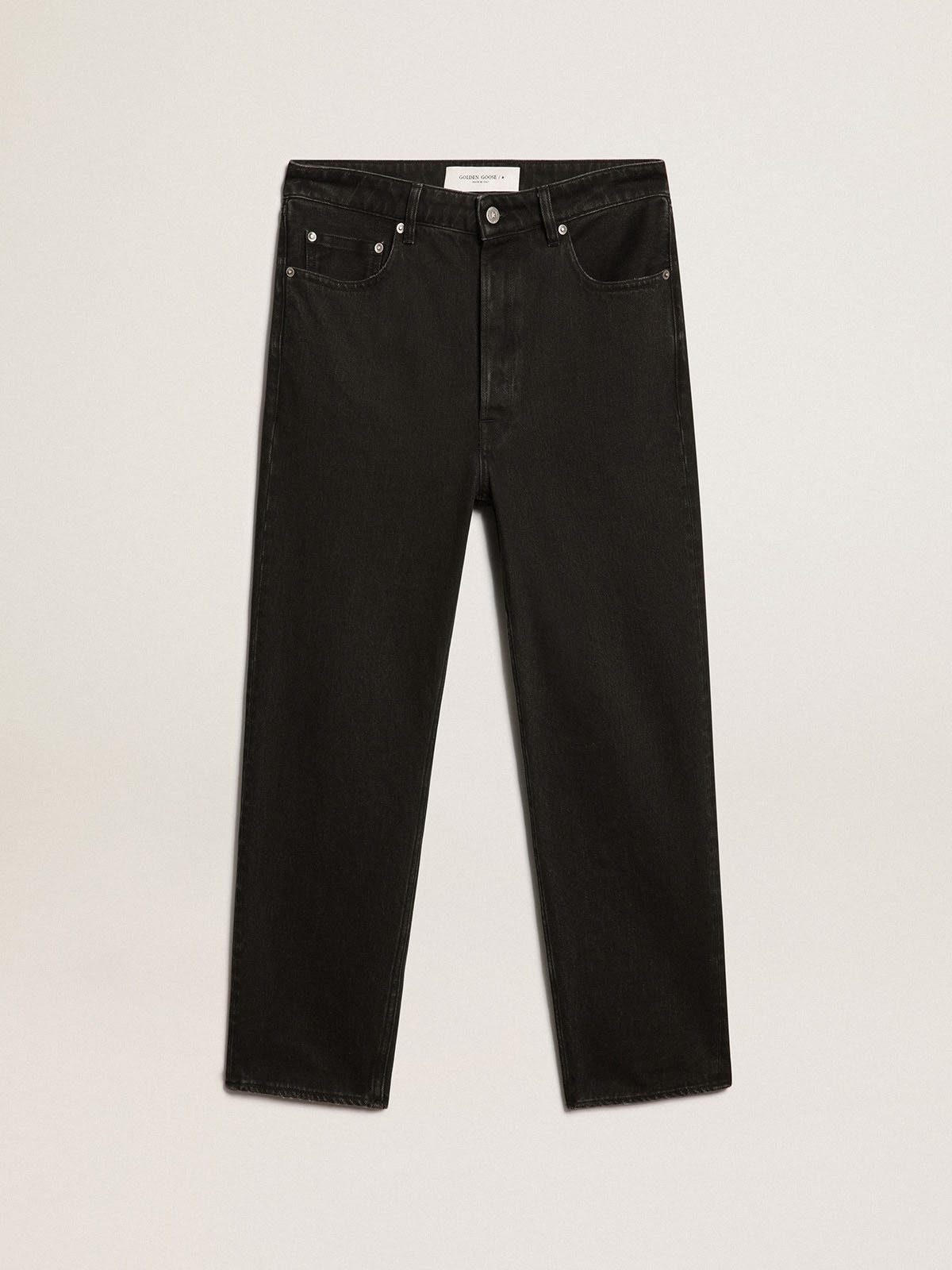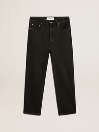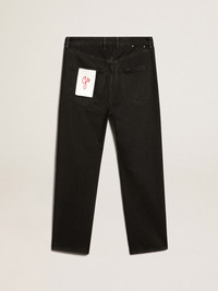 A unique, timeless collection that encapsulates the Golden Goose DNA, designed to remain with you every day, through thick and thin, come rain or shine. These black denim pants in pure cotton feature a regular leg and five pockets. The detachable white patch with a finely embroidered letter G in red adds the finishing touch. DETAILS Item No. GMP00596.P000625.90100 - Golden Collection - Color: black - Double gold star on the back - Regular leg - Five pockets - Main material: 100% cotton - Pocket lining: 65% polyester, 35% cotton - Made in Italy The model is 183 cm tall and is wearing a size 48 (IT).