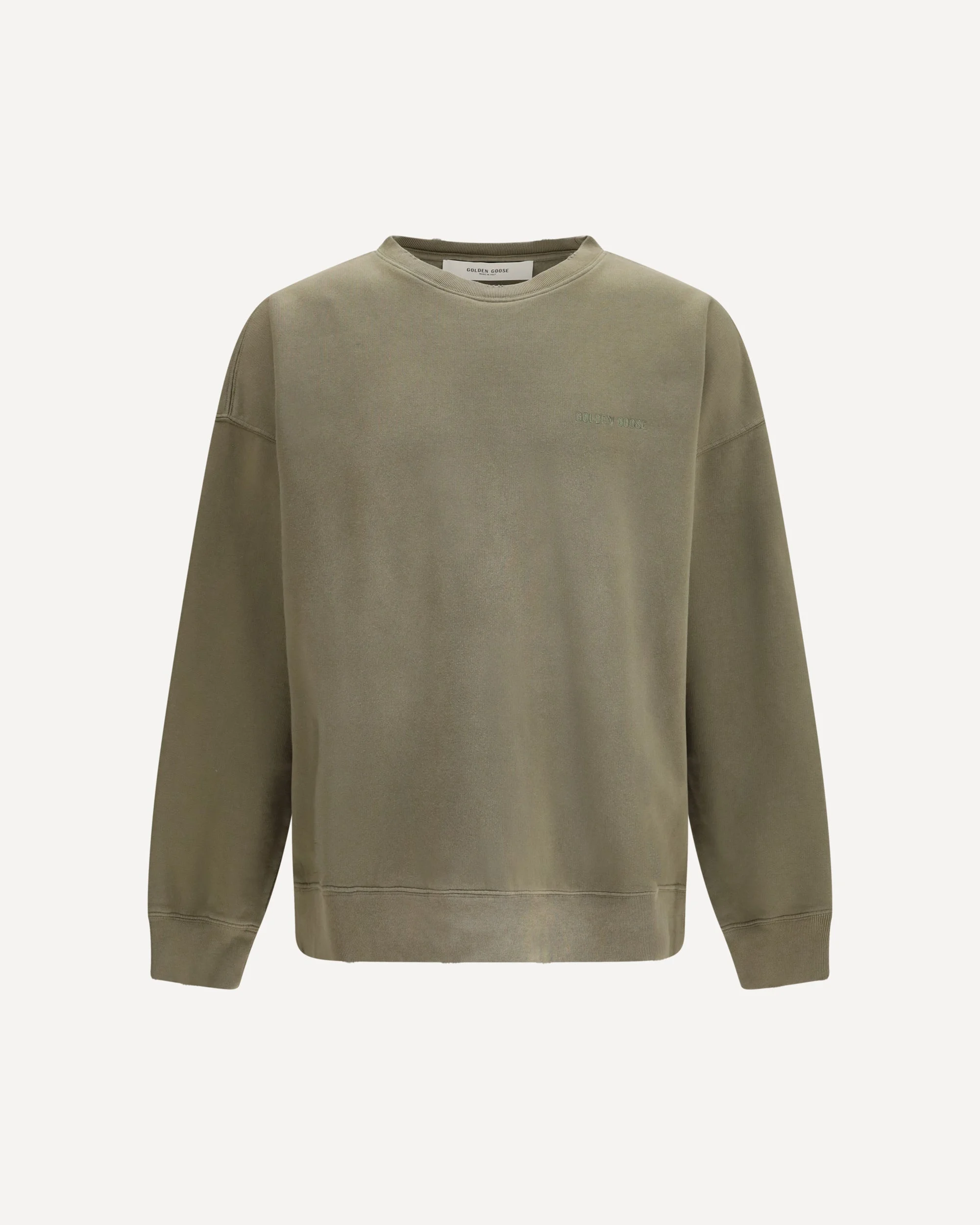 The Journey unisex Crew neck in garment-dyed cotton fleece by Golden Goose is crafted from soft fleece and is part of the Journey Collection. This unisex style features an oversized fit and a spray bleach treatment for a lived-in effect. A tonal “Golden Goose” embroidery appears on the chest, while the iconic double star stands out on the back. DETAILS - Sku: GUP01938P002383_15878 - Season: SS26 - Fit: Regular - Composition: GENERAL 100% Cotton - MADE IN ITALY
