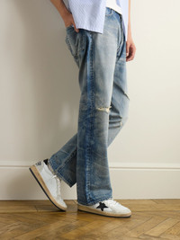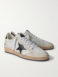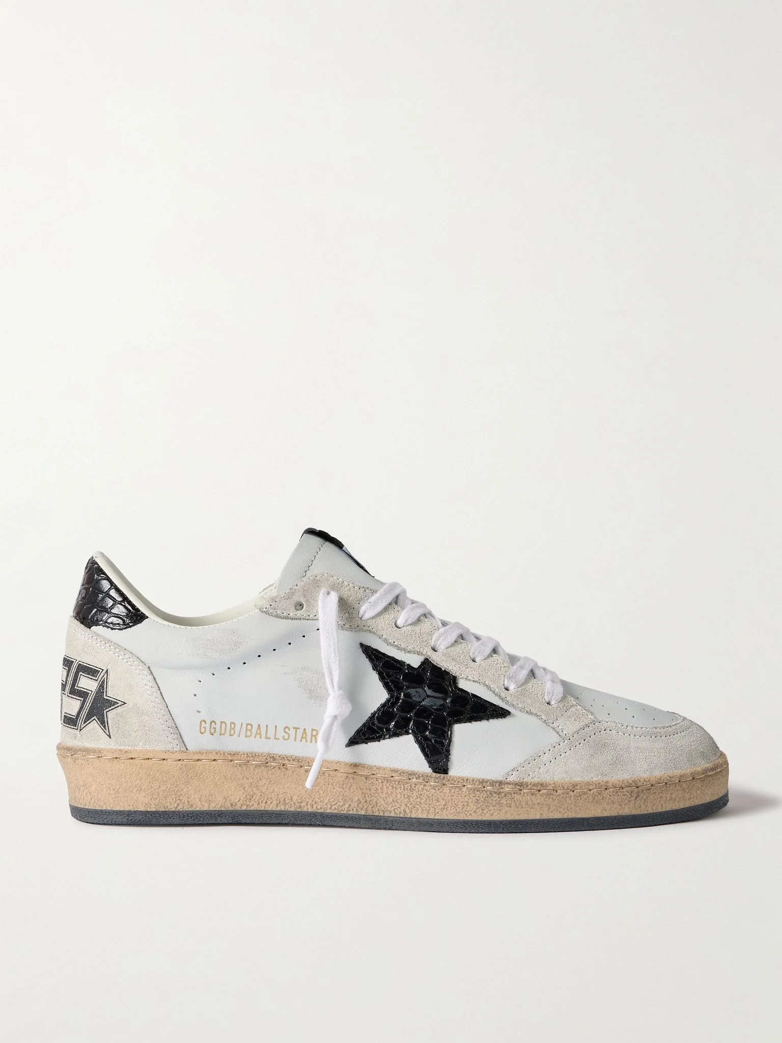 Golden Goose continues to champion the rough-around-the-edges look with its 'Ball Star' sneakers. The distressed leather uppers are finished with the brand's signature black star on the sides and metallic lettering just above the rubber soles. Size & Fit - Fits true to size. Take your normal size - Only available in full sizes, go up to the nearest whole size if you take a half size - European sizing Details & Care - Off-white leather, light-grey and black suede, black croc-effect leather (Cow, Sheep) - Lace up - Designer colour: Grey/ Ice/ Black - Style number: GMF00117.F006167.60533