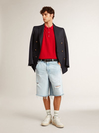 Men's polo shirt in red cotton piquet