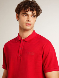 Embracing the essence of the season, this collection radiates vitality and freedom, combining airy elegance with dynamic sparks of energy. This polo shirt in red cotton piquet features horizontal ribbed detailing and tone-on-tone embroidered lettering on the chest. And the three buttons on the neckline add the finishing touch. DETAILS Item No. GMP01643.P001879.40512 - Journey Collection - Color: red - Regular fit - Polo style - Horizontal ribs - Short sleeves - Double star on the back - Main material: 100% cotton - Made in Italy The model is 183 cm tall and is wearing a size M.