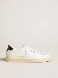 A tribute to the golden era of 1970s tennis. Our Matchstar is a theater of dreams and ever-evolving style. With a lived-in finish, this model with a white leather upper features a dark blue leather heel tab with white GGDB writing. And white laces add the finishing touch. DETAILS Item No. GMF00796.F006921.10793 - Color: white - Dark blue leather heel tab with white writing - White leather tongue with gold GGDB print - Lived-in finish - "Matchstar" insole - Applique label with gold print - White polyester patterned laces - Upper: 100% cow leather - Lining: 72% polyurethane, 21% viscose, 7% polyester - Sole: 100% rubber - Handmade - Made in Italy