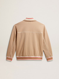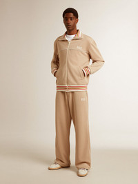 A collection with a casual soul but a versatile attitude: inspired by the Seventies, it has a timeless vintage appeal, suited to any occasion or look. With a concealed zipper, this men’s regular fit sweatshirt in pinstripe light beige technical jersey features pinstripe rib knit on the collar, cuffs and hem. The logo print on the chest and the two pockets on the front complete the look, along with the contrast piping on the seams. DETAILS Item No. GMP01963.P001653.15633 - Star Collection - Color: light beige - Ribbed edges - Contrasting white logo on the front - Two pockets - Long sleeves - Concealed zip fastening - Contrast piping - Regular fit - Main material: 100% polyester The model is 183 cm tall and is wearing a size M.