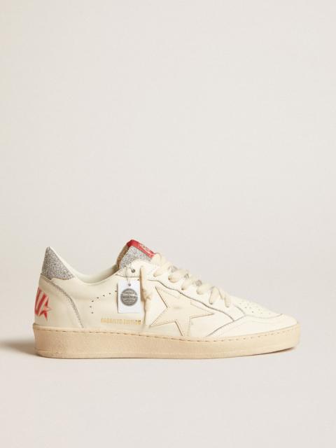 A sneaker designed to turn your special moments into unforgettable memories. Inspired by the 80s American college atmosphere, this Ball Star features the wording Dreaming in silver glitter on the heel. This men’s model, with a white nappa leather upper, stands out owing to its silver star and white crackle leather details, such as the toe and the insert on the back. DETAILS Item No. GMF00117.F005820.10449 - White nappa leather upper - Glitter Dreaming wording on the heel - Silver glitter star - Silver glitter heel tab - White nappa leather insert on the back - Ice-gray laces - Vintage finish - Upper: 93% sheepskin leather, 5% polyethylene terephthalate, 2% cotton - Lining: 64% cow leather, 36% cotton - Sole: 100% rubber - Made in Italy