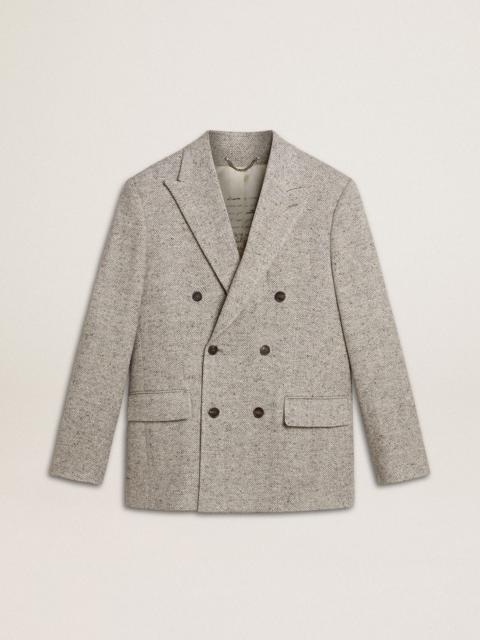 Men's beige chevron wool blend double-breasted blazer