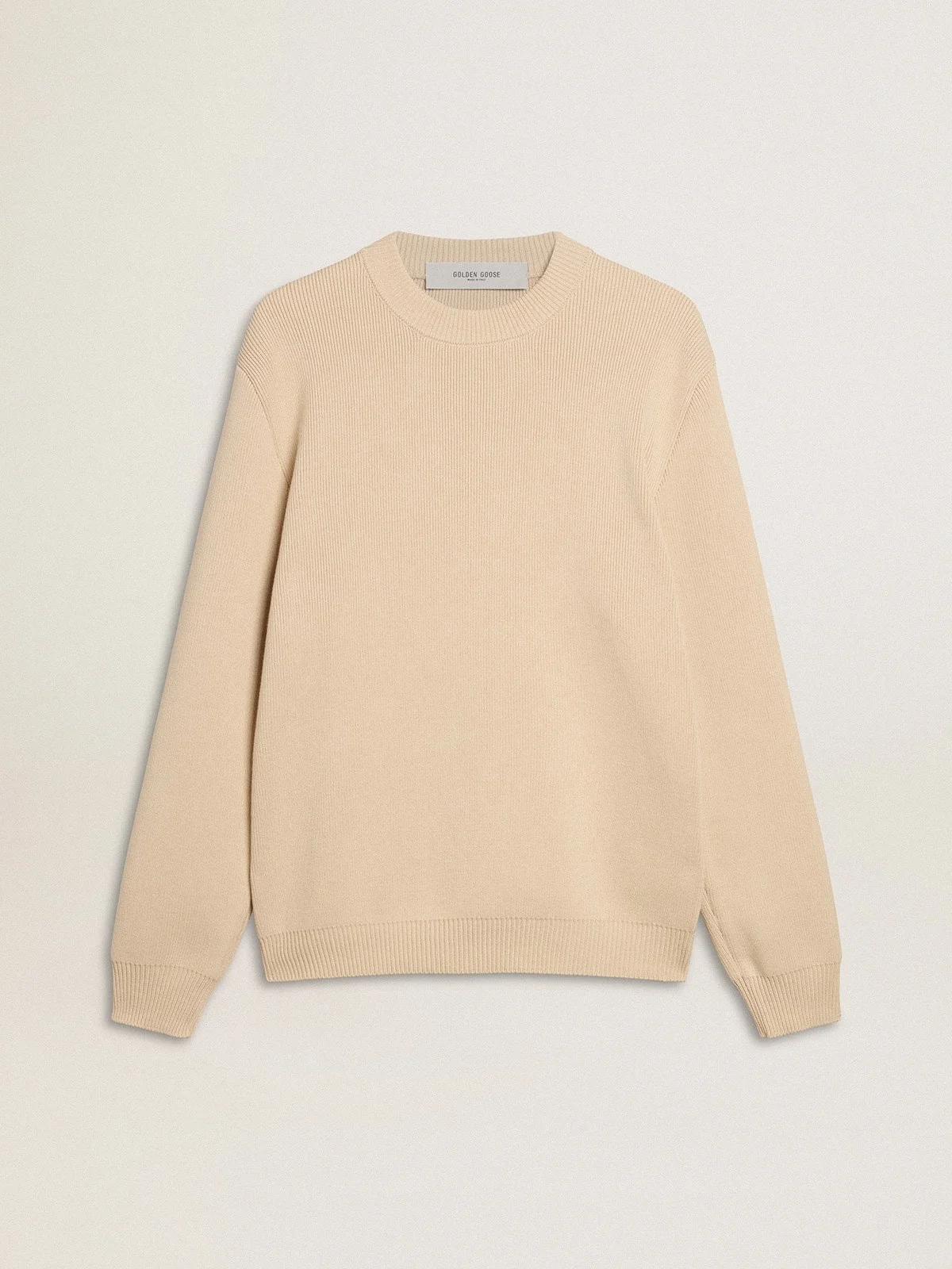 Men’s beige crew neck sweater with ‘Golden’ lettering on the back