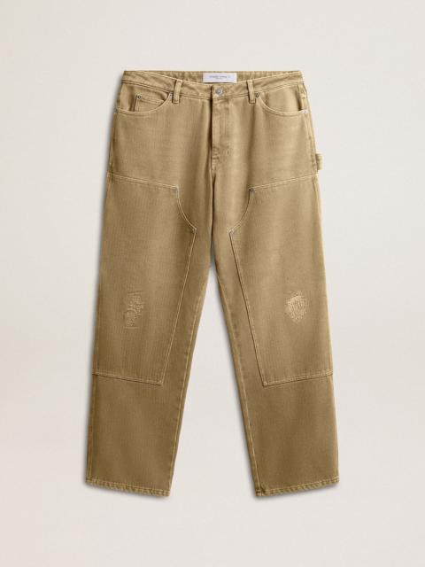 A collection inspired by the harmony of nature, where every detail flows with ease. In heavy beige cotton, these men's pants feature front patches with metallic details. The five pockets add the finishing touch. DETAILS Item No. GMP01942.P001558.15369 - Journey Collection - Color: beige - Regular fit - Patch with metal details - Double star on the back - Five pockets - Main material: 40% elastomultiester, 40% cotton, 20% polyester - Pocket lining material: 100% cotton - Made in Italy The model is 183 cm tall and is wearing a size 48.