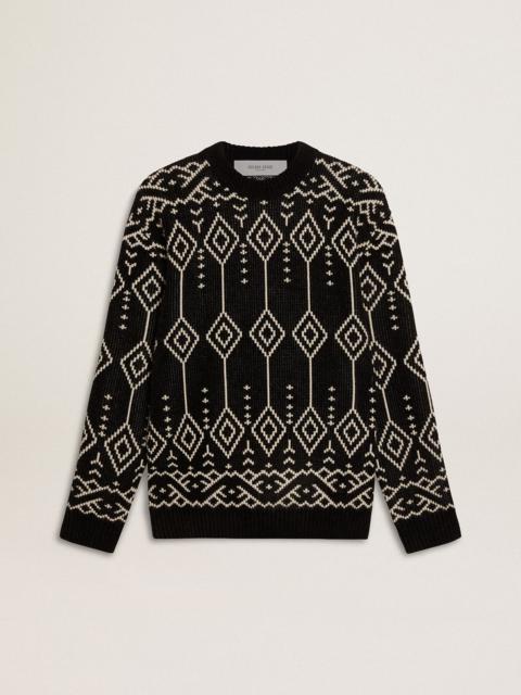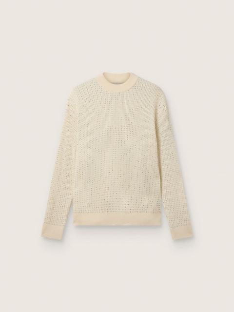 Inspired by the iconic Seventies, the carefree spirit of that era comes to life with the first drop of our Fall/Winter 25 collection. In a beige cotton blend, this men's sweater features an embossed woven pattern and a black embroidered logo on the chest. The micro-ribbed trims and two little stars on the back add the finishing touch. DETAILS Item No. GMP00841.P002178.15784 - Journey Collection - Color: beige - Raised woven pattern - Black embroidered logo - Micro-ribbed trims - Main material: 50% cotton, 50% polyester - Made in Italy The model is 183 cm tall and is wearing a size M.