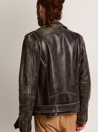 Men's biker jacket in distressed leather