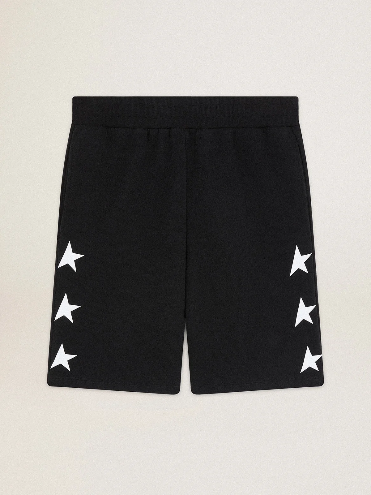 A collection with a casual soul but a versatile attitude: inspired by the Seventies, it has a timeless vintage appeal, suited to any occasion or look. These black pure cotton Bermuda boxer shorts feature a wide leg and contrasting white stars on the sides of the legs. DETAILS Item No. GMP00878.P000532.80203 - Color: black - Wide leg - Back pocket - Contrasting white stars on the sides - Main material: 100% cotton - Rib material: 100% cotton - Pocket lining: 100% cotton - Made in Italy The model is 183 cm tall and is wearing a size M.