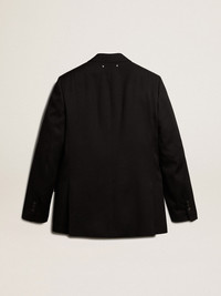 A unique, timeless collection that encapsulates the Golden Goose DNA, designed to remain with you every day, through thick and thin, come rain or shine. This black double-breasted blazer in wool gabardine features a button fastening and a printed inner lining. DETAILS Item No. GMP00835.P001521.90100 - Golden Collection - Color: black - Double-breasted model - Double star on the back - Button fastening - Three pockets - Inside pocket - Printed lining - Double vent on the back - Regular fit - Main material: 100% virgin wool - Lining material: 100% viscose - Made in Italy The model is 183 cm tall and is wearing a size 48 (IT).