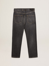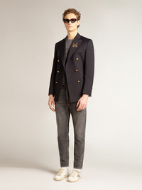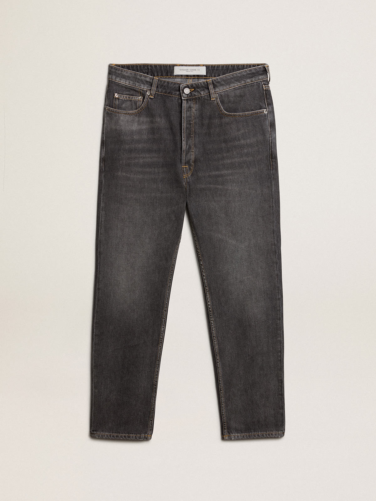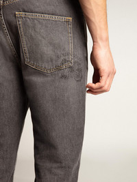 Designed to celebrate the Chinese New Year and the year of the dragon, this piece embodies the free spirit of new beginnings. These regular-fit jeans in bull denim with lived-in effect feature a CNY print on the rear right pocket. The double gold star on the back adds the finishing touch. DETAILS Item No. GMP00596.P001566.90100 - Color: black - Double star on the back - Regular fit - Wide leg - Five pockets - Main material: 100% cotton - Pocket lining: 65% polyester, 35% cotton - Made in Italy The model is 183 cm tall and is wearing a size 48 (IT).