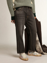 An old-flavored trip that doesn't revolve around the stops, but the ride itself. A unique journey of imagination, intimacy, and never-ending discoveries on the tracks of the Golden Express, reflecting in one collection its warm hues and romantic patterns. These loose-fit, wide-leg black jeans are inspired by the skateboarding world and feature a stonewashed treatment that makes every garment unique. DETAILS Item No. GMP01186.P000834.90100 - Color: black - Double gold star on the back - Stonewashed finish - Five pockets - Wide leg - Low waist - Main material: 100% cotton - Pocket lining: 80% cotton, 20% polyester The model is 183 cm tall and is wearing a size 32.