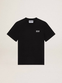 A collection with a casual soul but a versatile attitude: inspired by the Seventies, it has a timeless vintage appeal, suited to any occasion. This round-neck, regular-fit T-shirt in black pure cotton features a logo on the front and a maxi star on the back, both in white. A versatile garment for all your looks. DETAILS Item No. GMP01220.P000879.80203 - Color: black - Round neck - White glitter logo on the front - White maxi star on the back - Short sleeves - Main material: 100% cotton - Made in Italy The model is 183 cm tall and is wearing a size M.