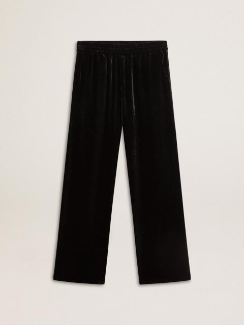 Men's black velvet effect pants