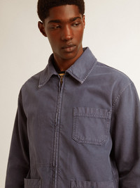 A love story to our home, Marghera. Where everything began. Our latest collection reflects the spirit of our birthplace, its contrasts, industrial soul, and manufacturing landscapes, weaving together inspirations from both the vibrant energy of workwear and the refined essence of traditional tailoring. This blue denim cotton zip-up jacket features fabric deliberately used on the reverse side and a distressed finish. The spraying and stitching make this jacket a true one-of-a-kind. DETAILS Item No. GMP01941.P001683.50100 - Journey Collection - Color: blue - Double star on the back - Regular fit - Three front patch pockets - Distressed finish - Zip fastening - Main material: 100% cotton - Made in Italy The model is 183 cm tall and is wearing a size M.