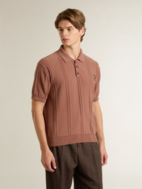 Inspired by the iconic Seventies, the carefree spirit of that era comes to life with the first drop of our Fall/Winter 25 collection. This men's polo in a brick-colored cotton blend features an embossed woven pattern and a black embroidered logo on the chest. The micro-ribbed trims and two little stars on the back add the finishing touch. DETAILS Item No. GMP02387.P002178.55242 - Journey Collection - Color: brick - Raised woven pattern - Black embroidered logo - Micro-ribbed trims - Main material: 50% cotton, 50% polyester - Made in Italy The model is 183 cm tall and is wearing a size M.