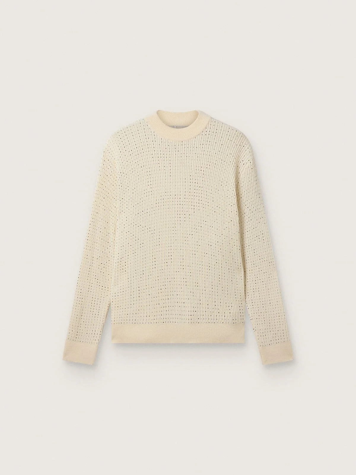 Men's crew-neck sweater in white merino wool with all-over crystals