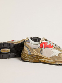 A soul with a wealth of stories to tell: our Dad-Star sneakers have timeless style, created to be passed down through the generations. This version features a white mesh and gold foiled leather upper accentuated by a white leather star and gold foiled leather heel tab. The red eyelets and gray laces add the finishing touch. DETAILS Item No. GMF00884.F007461.65225 - White mesh and gold foiled leather upper - White leather star - Gold foiled leather heel tab - Red eyelets - Gray laces - Vintage finish - Upper: 65% cow leather, 25% polyester, 5% glass fiber, 3% polyamide, 2% textile polyurethane - Lining: 66% cow leather, 27% cotton, 7% polyester - Sole: 100% rubber - Handmade - Made in Italy