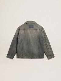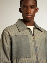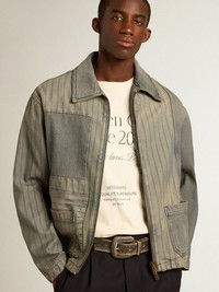Men’s denim jacket with stripes and patches on the front