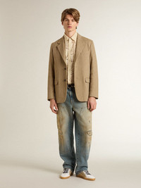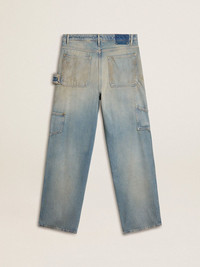 Inspired by the iconic Seventies, the carefree spirit of that era comes to life with the first drop of our Fall/Winter 25 collection. With an oversized fit, these light blue jeans feature the typical details of workwear pants and are characterized by sand washing and distressed-effect details. The five pockets, side loop and double stars on the back add the finishing touch. DETAILS Item No. GMP01942.P002083.50491 - Journey Collection - Color: light blue - Oversized fit - Sand washing - Five pockets - Distressed effect - Side loop - Main material: 100% cotton - Pocket lining: 65% polyester, 35% cotton - Made in Italy The model is 183 cm tall and is wearing a size 32.