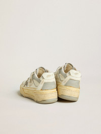 Inspired by the glory days of American basketball, the Forty2 sneaker channels the evergreen charm of the 1990s. Its chunky low-top silhouette and sporty design evoke a legendary journey, celebrating the indomitable spirit of the eternal dreamer. With a unique handcrafted construction, this men’s version in white leather features a gray 3D textured-effect TPU star. The laces embellished with Swarovski crystals adds the finishing touch. DETAILS Item No. GMF00630.F007038.10973 - White leather upper - Gray 3D textured-effect TPU star - Gray leather heel tab with Swarovski crystals - Silver embossed lettering on the tongue - Gray leather tongue - Lived-in finish - Leather insole and double-density foam - Double sole with bandage-effect foxing - Color block effect sculpted outsole - Gray textured piping - Swarovski laces - Silver eyestay with logo in 3D textured effect TPU - Upper: 84% cow leather, 15% polyester, 1% polyurethane - Lining: 38% polyester, 38% cotton, 20% cow leather, 2% polyurethane, 2% spandex - Sole: 100% rubber - Handmade - Made in Italy