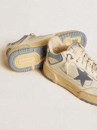 Inspired by the glory days of American basketball, the Forty2 sneaker channels the evergreen charm of the 1990s. Its chunky low-top silhouette and sporty design evoke a legendary journey, celebrating the indomitable spirit of the eternal dreamer. With a unique handcrafted construction and micro-perforated inserts, this men’s version in white leather features details with a 3D textured effect, such as the gray TPU star and gray leather insert on the back, and a white leather heel tab. The gray piping and vintage-effect white laces add the finishing touch. DETAILS Item No. GMF00630.F006886.10973 - White leather upper - Gray 3D textured-effect TPU star - White leather heel tab - White micro-perforated leather inserts - Gray 3D textured-effect leather insert on the back - Woven label with custom print - Striped-effect white nylon tongue and inserts - Lived-in finish - Leather insole and double-density foam - Double sole with bandage-effect foxing - Color block effect sculpted outsole - Gray textured piping - Vintage-effect white laces - Gray eyestay with logo in 3D textured-effect TPU - Upper: 84% cow leather, 15% polyester, 1% textile polyurethane - Lining: 38% polyester, 38% cotton, 20% cow leather, 2% textile polyurethane, 2% spandex - Sole: 100% rubber - Handmade - Made in Italy