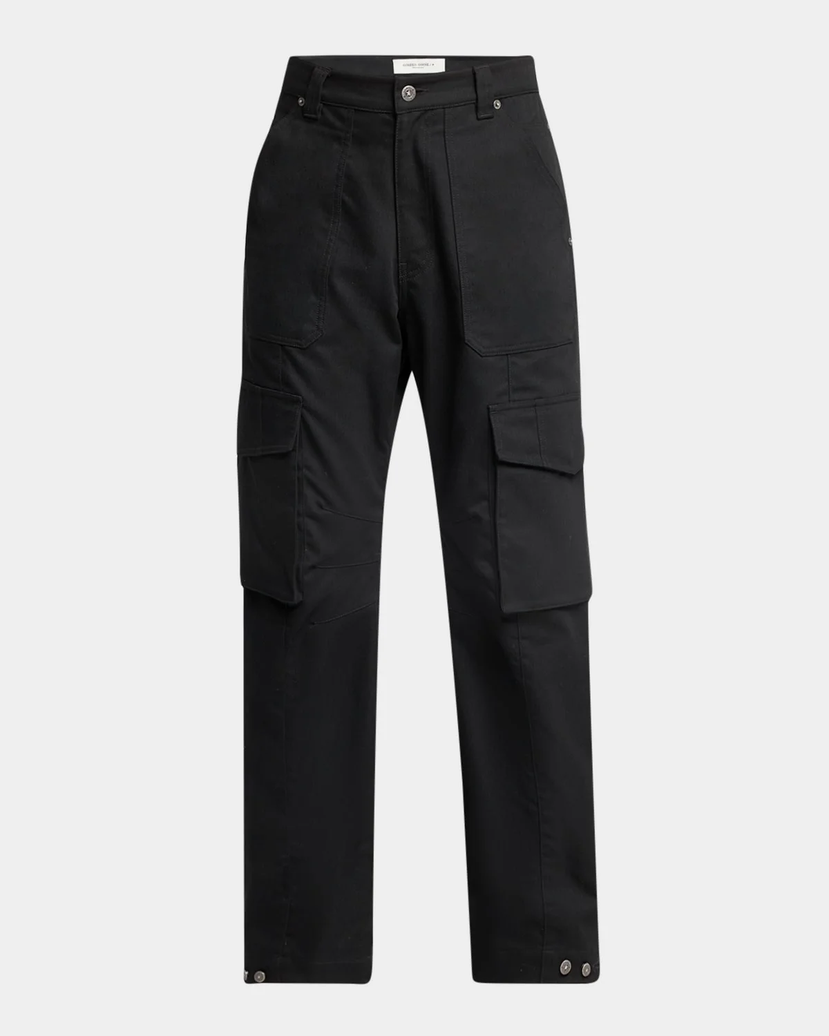 - Golden Goose cargo pants featuring leg flap pockets and button hem details - Regular rise - Side and back patch pockets - Wide legs - Full length - Button/zip fly; belt loops - Polyester/cotton - Made in Italy