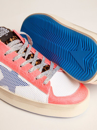 These sneakers bring together all our experiences, redefining the concept of patchwork. We have played around with this concept in the limited edition LAB collection: Stardan sneakers made of craquelé leather with leopard-print pony skin insert and glitter laces. DETAILS Item No. GMF00128.F000899.80666 - Craquelé leather upper - Blue star - Glitter laces - Mesh inserts - Leopard-print pony skin insert - Vintage finish - Handcrafted - Made in Italy
