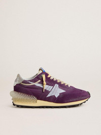 Track and field-inspired, with a Seventies flair. Day after day, our new Marathon sneakers are designed to keep you running after your dreams, paying homage to the marathon that is life. This men's model features a purple nylon upper with purple suede inserts, a white star, and a silver foiled leather heel tab. The heel tab area is characterized by the addition of a fully 3D stabilizer, an iconic feature of this shape which adds dynamism and accentuates the cushioning like never before. The look is completed by worn-white laces and a starred outsole that make a truly unique impression. DETAILS Item No. GMF00684.F007381.45377 - Purple nylon upper with purple suede inserts - White star - Silver foiled leather heel tab - Worn-white laces - 3D printed extra cushioning stabilizer - Vintage finish - Upper: 57% polyamide, 27% cow leather, 6% textile polyurethane, 6% polyester, 4% sheepskin leather - Lining: 41% sheepskin leather, 41% cotton, 6% textile polyurethane, 12% polyester - Sole: 100% rubber - Handmade - Made in Italy
