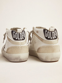 A casual look exuding streetwear elegance: a model that interprets the Golden Goose style thanks to the use of exclusive treatments and finishes. These Mid Star sneakers feature a white and grey leather and suede upper and a black star. DETAILS Item No. GMF00122.F001487.10599 - Main material: 100% cowhide leather - Lining: 55% cotton, 45% cow leather - Sole: 100% rubber - White and grey leather and suede upper - Suede heel tab - Black leather star - Grey laces - Made in Italy - Handcrafted - Made in Italy