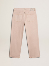 A collection inspired by the harmony of nature, where every detail flows with ease. These relaxed-fit jeans are characterized by a special craftsmanship process, unique to each piece: originally black, they are washed and dyed multiple times to achieve this distinctive pastel pink color. DETAILS Item No. GMP01636.P001854.25235 - Journey Collection - Color: pink - Double star on the back - Relaxed fit - Dyed effect - Main material: 100% cotton - Pocket material: 65% polyester, 35% cotton - Made in Italy The model is 183 cm tall and is wearing a size 32.