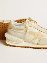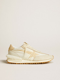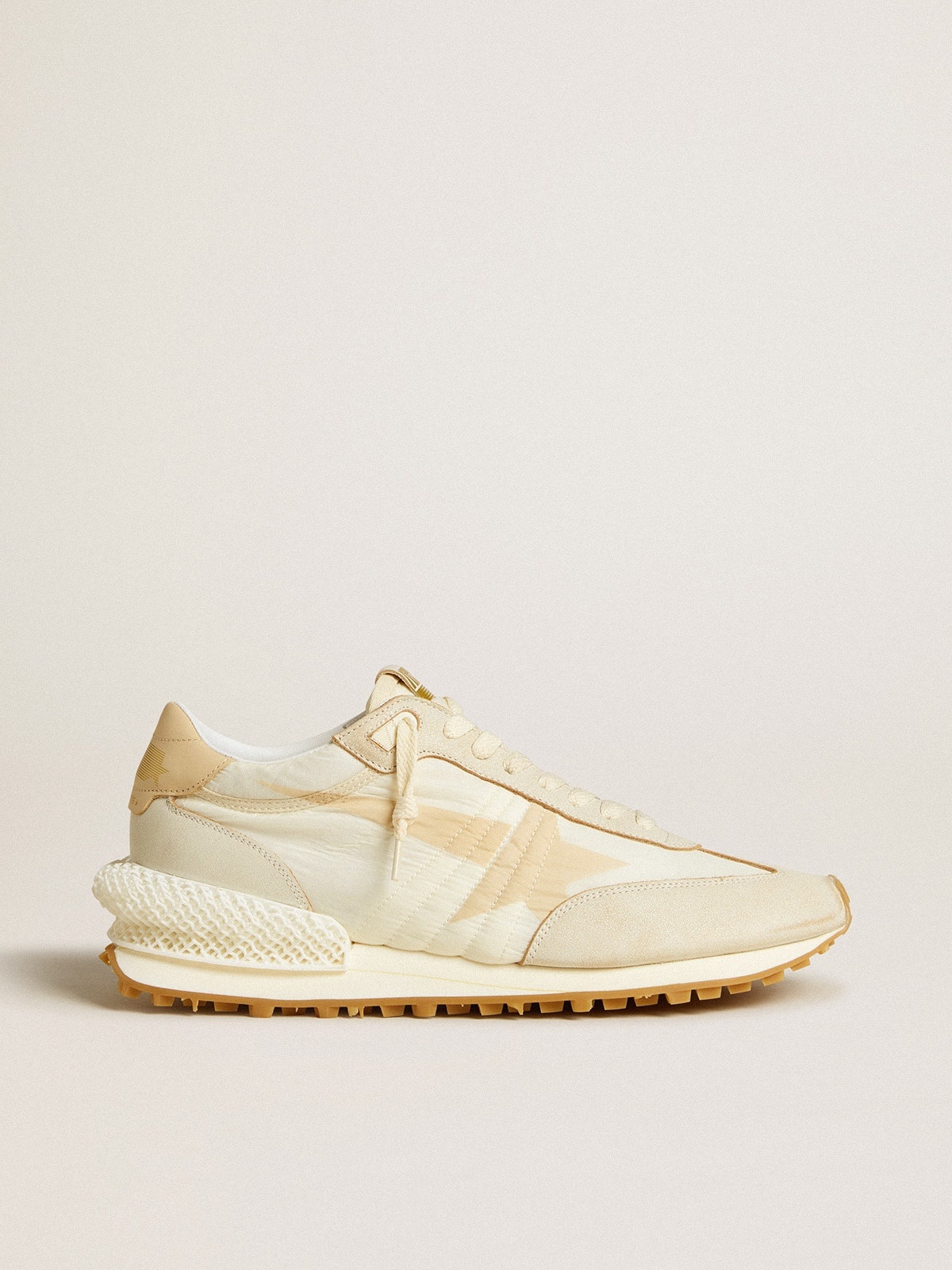 Track and field-inspired, with a Seventies flair. Day after day, our new Marathon sneakers are designed to keep you running after your dreams, paying homage to the marathon that is life. This men's model features a beige nylon upper with light gray leather inserts, a beige printed star, and a beige leather heel tab. The look is completed by a textured-effect white PVC spoiler and beige laces which, together with the starred outsole, make a truly unique impression. DETAILS Item No. GMF00684.F006961.15723 - Beige nylon upper with light gray leather inserts - Beige printed star - Beige leather heel tab - White textured-effect PVC spoiler - Beige laces - Upper: 67% polyamide, 33% cow leather - Lining: 41% cotton, 41% sheepskin leather, 12% polyester, 6% textile polyurethane - Sole: 100% rubber - Handmade - Made in Italy