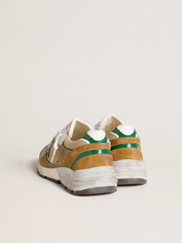 Urban style and a spirit of craftsmanship are combined in our Running Sole sneakers: the ideal companion for your metropolitan adventures. This men’s model features a beige nylon upper accentuated with a green star and white leather heel tab. The brown suede insert and white laces add the finishing touch. DETAILS Item No. GMF00199.F006460.11207 - Beige nylon upper - Green leather star - White leather heel tab - Brown suede inserts - Beige mesh tongue - White laces - Vintage finish - Upper: 59% cow leather, 31% polyester, 6% polyurethane, 4% polyamide - Lining: 71% cow leather, 15% polyester, 8% polyurethane, 6% cotton - Sole: 100% rubber - Handmade - Made in Italy