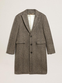 A unique, timeless collection that encompasses the essence of Golden Goose, designed to remain with you every day and accompany your highs and lows, come rain or shine. This regular-fit single-breasted coat in beige and anthracite gray wool with a herringbone weave features a button fastening at the front and a detachable white patch with a finely embroidered letter G in red. DETAILS Item No. GMP00986.P000616.81173 - Color: beige and anthracite gray - Single-breasted model - Double gold star on the back - Detachable white patch with red embroidered letter G - Regular fit - Two front pockets - Long sleeves - Button fastening - Main material: 100% virgin wool - Contrasting material: 100% sheepskin leather - Lining: 64% viscose, 36% rayon - Sleeve lining: 52% viscose, 48% acetate - Made in Italy The model is 183 cm tall and is wearing a size 48.