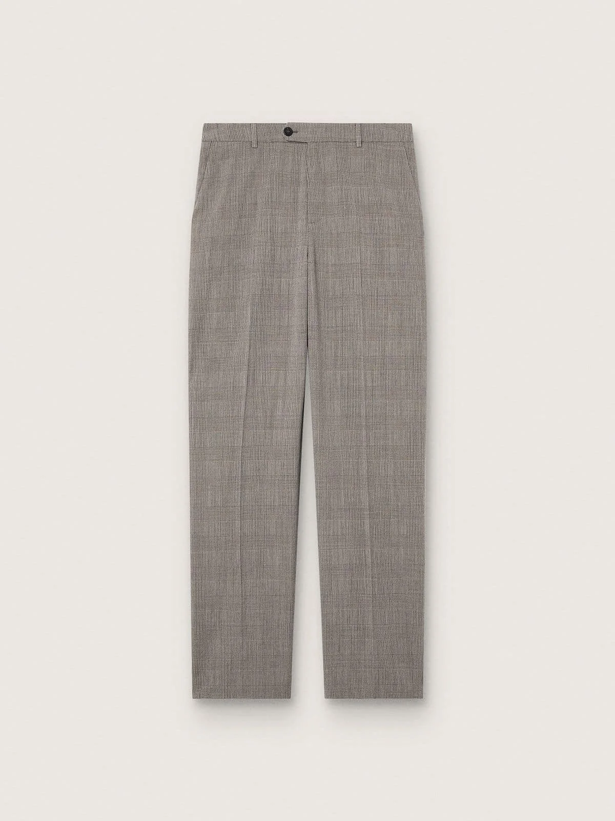 Our Holiday Collection is a celebration of woven textures and sharp tailoring, blending with soft knits, velvet whispers, archive florals, and satin that catches the light just right. A timeless classic in the male wardrobe: these slim-fit pants in gray Prince of Wales check fabric feature two pockets on the front, and a fastening with horn button and zip. The welt pockets on the back with horn buttons and the iconic silver stars complete the look. DETAILS Item No. GMP02539.P002318.60567 - Journey Collection - Color: gray - Men's model in Prince of Wales check - Slim fit - Front pockets in viscose twill - Welt pockets on the back with horn buttons - Front fastening with horn button, metal hook and nylon zip - Double star on the back - Belt loops - Main material: 100% virgin wool - Lining: 100% viscose - Made in Italy The model is 183 cm tall and is wearing a size M.