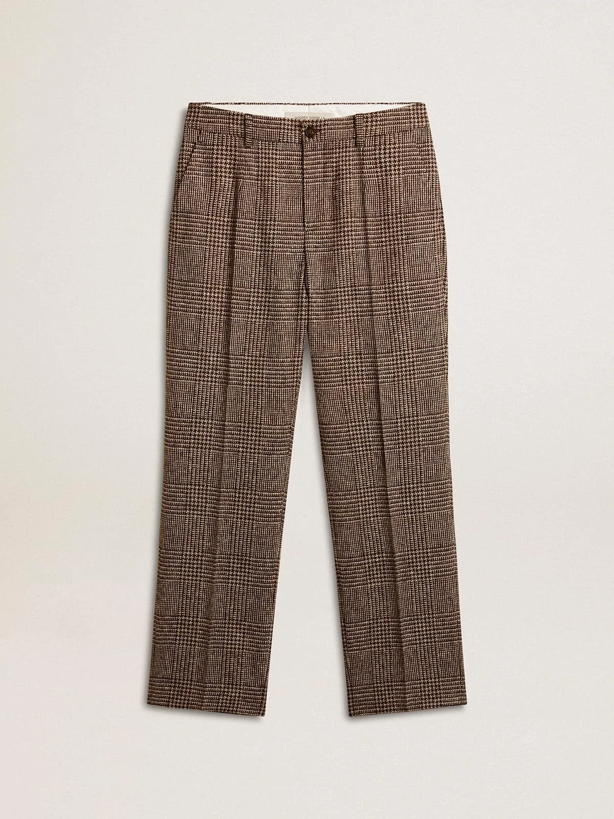 A love story to our home, Marghera. Where everything began. Our latest collection reflects the spirit of our birthplace, its contrasts, industrial soul, and manufacturing landscapes, weaving together inspirations from both the vibrant energy of workwear and the refined essence of traditional tailoring. With a loose cut and straight leg, these men's trousers feature two metal little stars on the back and branded horn buttons. DETAILS Item No. GMP01503.P001341.82513 - Journey Collection - Color: Gray - Double star on the back - Horn button fastening - Four pockets - Straight leg - Main material: 73% virgin wool, 27% polyamide - Lining material: 100% viscose - Pocket lining: 100% cotton - Made in Italy The model is 183 cm tall and is wearing a size 44(IT).