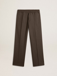 A love story to our home, Marghera. Where everything began. Our latest collection reflects the spirit of our birthplace, its contrasts, industrial soul, and manufacturing landscapes, weaving together inspirations from both the vibrant energy of workwear and the refined essence of traditional tailoring. These soft pants in anthracite gray wool feature an elastic waistband, making them adaptable to different types of outfit. The pocket on the back adds the finishing touch. DETAILS Item No. GMP01812.P001610.82646 - Journey Collection - Color: anthracite gray - Elasticated waist - Double star on the back - Wide leg - Loose fit - Back pocket - Main material: 100% virgin wool - Leg lining: 100% viscose - Pocket lining: 100% cotton - Made in Italy The model is 183 cm tall and is wearing a size 48.