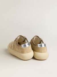 Your new moment to detach from reality and find your center. Your new way to get back to yourself and breathe in your own lightness - flying as never before. Cozy Space shoes feature the extra-cushion sole and insole padded with memory foam, guaranteeing unparalleled comfort starting from the very first step. This men's model, lined in soft leather, features a beige suede upper accentuated with a tone-on-tone perforated star and a silver metallic leather heel tab. The tongue embroidered in brown and the cream laces complete the look. DETAILS Item No. GMF00376.F007968.55528 - Beige suede upper - Perforated star - Metallic silver heel tab - Leather lining - Cream-colored laces - Tongue embroidered in shades of brown - Upper: 96% cow leather, 4% goatskin leather - Lining: 57% cotton, 26% textile polyurethane, 11% polyester, 6% viscose - Sole: 100% rubber - Handmade - Made in Italy