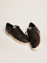 Stardan sneakers are inspired by 90s basketball icons: the strong bond with the sense of nostalgia is seen in their retro look, hinting at past memories in the same way as an old postcard does. This minimalist version is made in total black leather and has the classic Golden Goose vintage finish. DETAILS Item No. GMF00128.F000860.90100 - Upper: 100% cowhide leather - Lining: 43% cotton, 25% cowhide leather, 13% polyester, 10% nylon, 6% nylon, 3% polyurethane - Sole: 100% rubber - Mesh inserts - Black&gold colour combo - Distressed finish - Handcrafted - Made in Italy