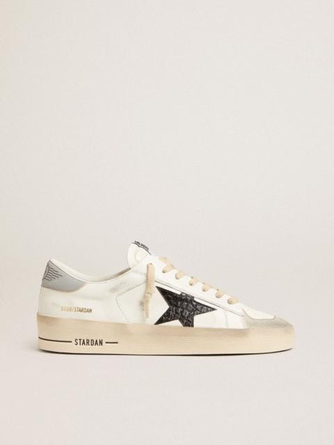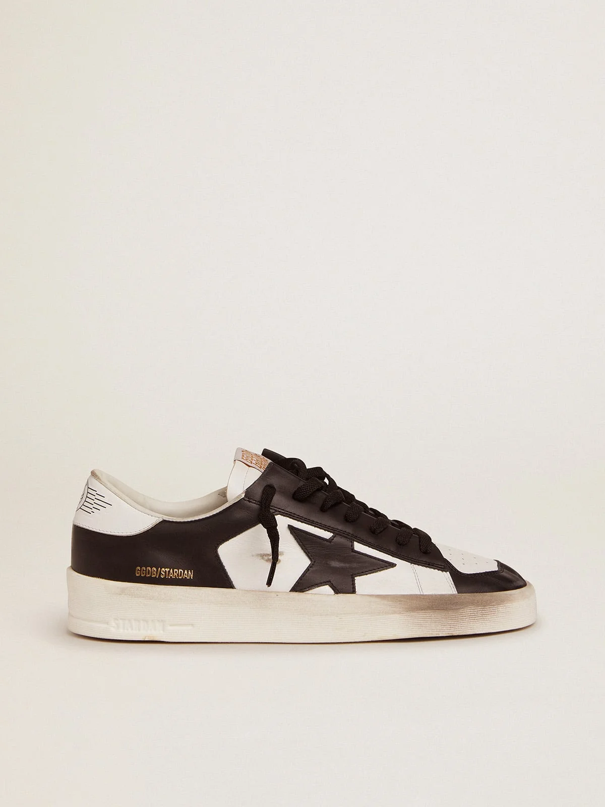 The glorious Nineties wrapped up in a sneaker. The Stardan sneakers pay homage to the basketball icons of that decade, while keeping an eye on the present. This men’s version features a black and white leather upper. The black leather star and white leather heel tab add the finishing touches. DETAILS Item No. GMF00128.F002186.10283 - Color: black and white - Black leather star - White leather heel tab - Black laces - Upper: 100% cow leather - Lining: 57% cow leather, 43% cotton - Sole: 100% rubber - Handmade - Made in Italy
