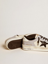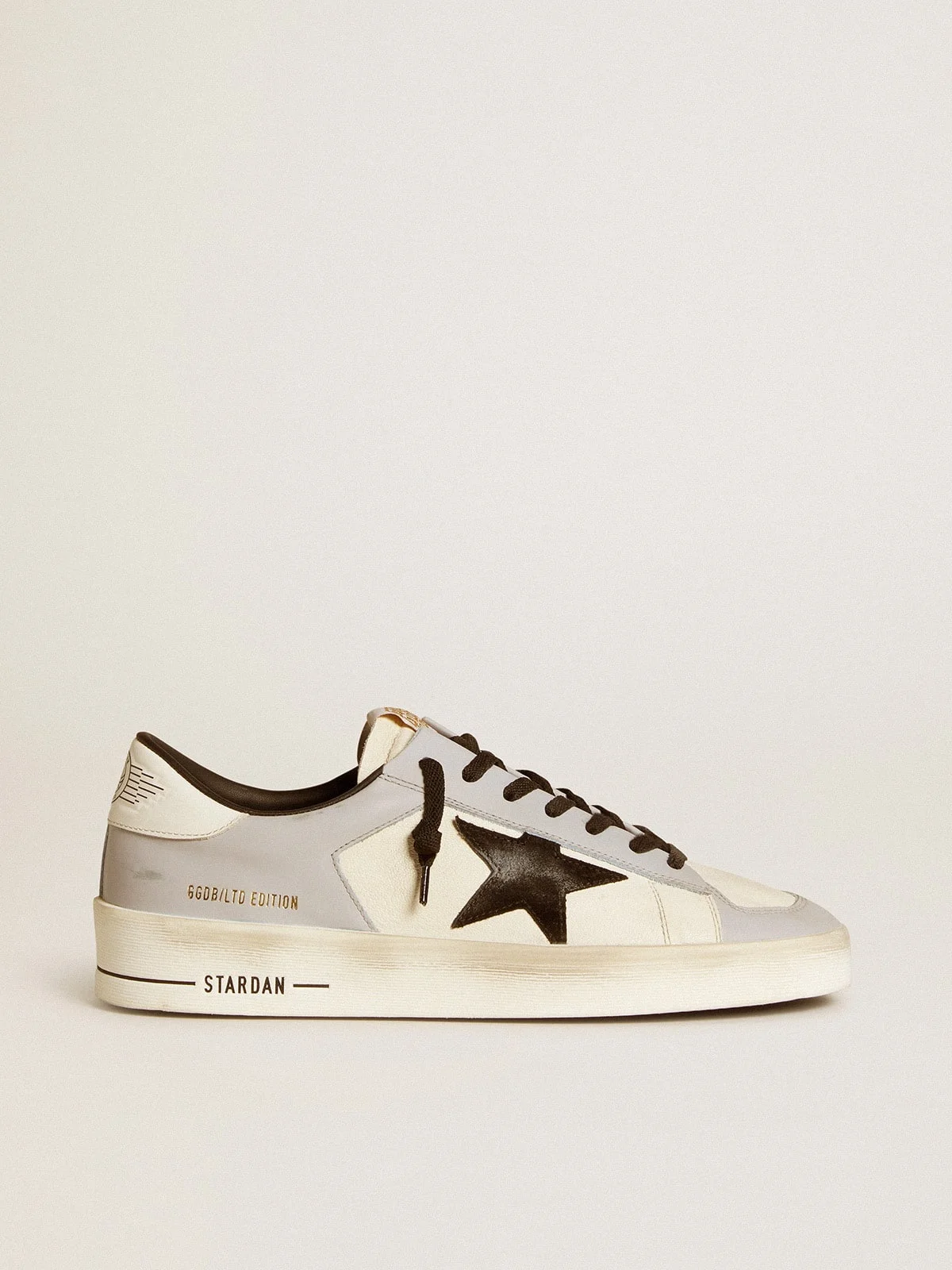 The glorious Nineties wrapped up in a sneaker. The Stardan sneakers pay homage to the basketball icons of that decade, while keeping an eye on the present. This version with white nappa leather and gray leather upper features a black suede star and white leather heel tab. And black laces add the finishing touch. DETAILS Item No. GMF00333.F006629.81749 - White nappa and gray leather upper - Black suede star - White leather heel tab - White nappa leather tongue - Black laces - Vintage finish - Upper: 70% cow leather, 30% sheepskin leather - Lining: 44% cotton, 25% cow leather, 20% textile polyurethane, 6% polyester, 5% viscose - Sole: 100% rubber - Handmade - Made in Italy