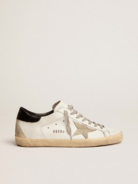 Men’s Super-Star sneakers are a Golden Goose evergreen and accompany its collections season after season, thanks to the use of innovative materials and finishes. This design, in cow leather, features a black leather heel tab, suede star and metal lettering on the upper. Iconic vintage finish. DETAILS Item No. GMF00102.F000318.10220 - Upper: 100% cow leather - Lining: 60% cow leather, 40% cotton - Sole: 100% rubber - Black leather heel tab - Suede star - Lettering with metal studs - Vintage finish - Handmade - Made in Italy