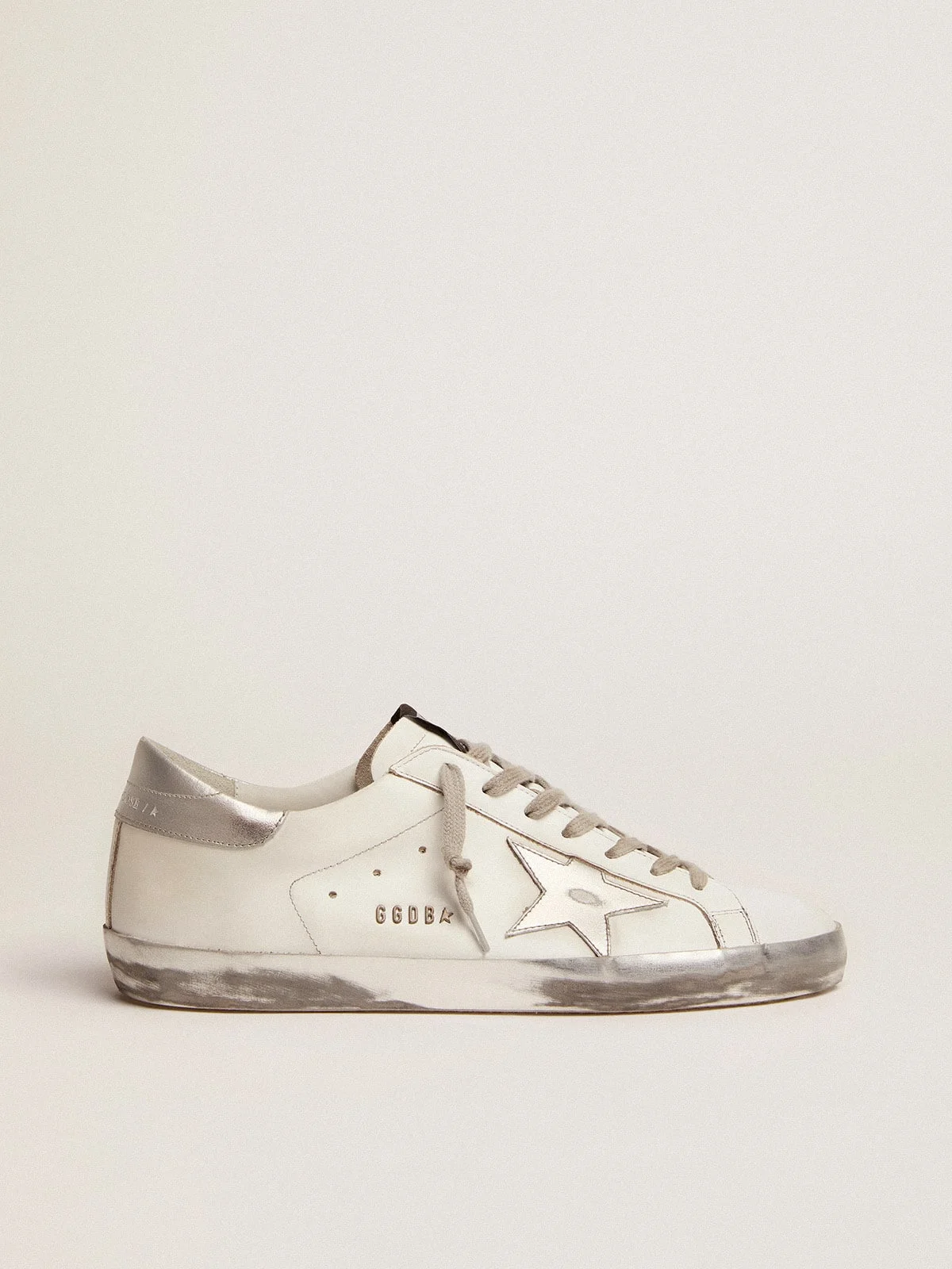 Our signature and most iconic sneaker. Inspired by skateboarding, our Super-Stars became an evergreen of everyday looks. DETAILS Item No. GMF00101.F000314.80185 - Upper in calfskin leather - Star and heel tab in glitter suede - Logo lettering on the outside of the right shoe - Rubber sole - 2cm insole - Timeless GGDB Style - The shoe shown is size 43 - Handcrafted - Made in Italy