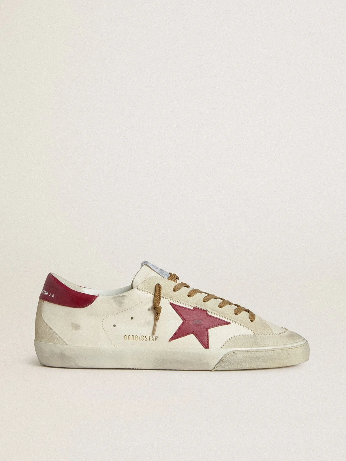 A timeless icon yet one that’s constantly evolving. At Golden, we love taking our classics and reworking them all the time, always from a new angle. These men's Super-Star with a white leather upper feature a red leather star and heel tab. The beige suede inserts and mustard-yellow laces add the finishing touch. DETAILS Item No. GMF01019.F007920.11196 - Color: white - Red leather star - Red leather heel tab - Beige suede inserts and toe - Mustard-yellow laces - Vintage finish - Upper: 100% cow leather - Lining: 41% cotton, 30% cow leather, 18% textile polyurethane, 7% polyester, 4% viscose - Sole: 100% rubber - Handmade - Made in Italy
