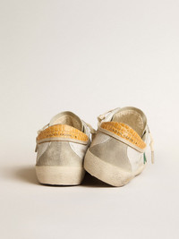 A timeless icon yet one that’s constantly evolving. At Golden, we love taking our classics and reworking them all the time, always from a new angle. These Super-Star with a white leather upper feature a green suede star, a yellow crocodile print leather heel tab and an ice-gray suede tongue. The ice-gray suede insert on the back and cream-colored laces add the finishing touch. DETAILS Item No. GMF00102.F005993.82674 - Color: white - Green suede star - Yellow crocodile-print leather heel tab - Insert on the back in ice-gray suede - Ice-gray suede tongue - Cream-colored cotton trim - Cream-colored laces - Vintage finish - Upper: 100% cow leather - Lining: 41% cotton, 31% cow leather, 18% textile polyurethane, 7% polyester, 3% viscose - Sole: 100% rubber - Handmade - Made in Italy