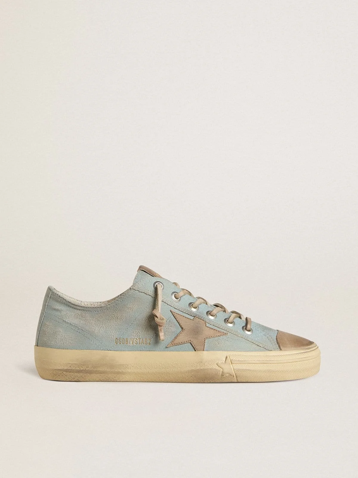Beauty that lies in simplicity: in our V-Star sneakers, an essential shape meets stylish detail. This model with a light blue canvas upper features a dove-gray leather star. And white laces add a stylish finishing touch. DETAILS Item No. GMF00129.F007500.50934 - Light blue canvas upper - Dove-gray leather star - White laces - Vintage finish - Upper: 84% cotton, 16% cow leather - Lining: 54% cotton, 39% cow leather, 5% polyester, 2% textile polyurethane - Sole: 100% rubber - Handmade - Made in Italy